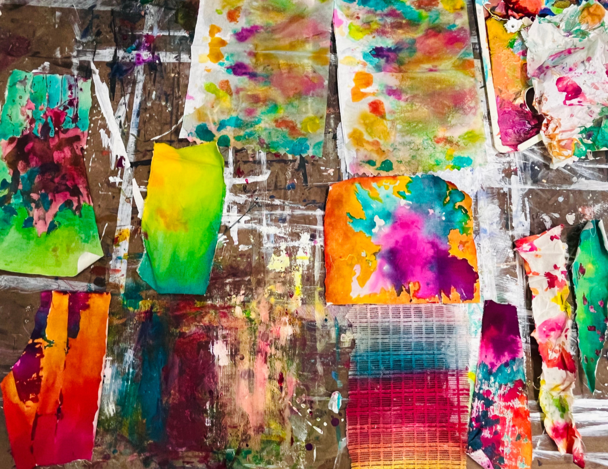 A series of form developments highlighting vibrant color combinations and fabric manipulation.